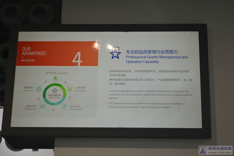 蘇州天孚光通信股份有限公司是上市光器件企業(yè)中的優(yōu)秀代表,產(chǎn)品高品質(zhì)早已為業(yè)界所熟知,而訊石來到天孚通信展臺(tái),就是想進(jìn)一步觀察這家優(yōu)秀光器件企業(yè)的新情況。天孚通信副總經(jīng)理王志弘先生接受了訊石的采訪,他向訊石介紹天孚通信近段時(shí)間以來的變化。