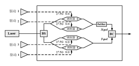 2.1 100Gb/s線路側的集成DP-QPSK光發(fā)射機器件
