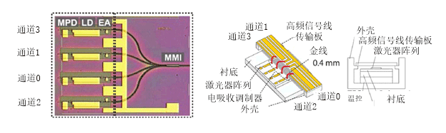 圖4 基于單片集成技術的TOSA芯片和器件技術