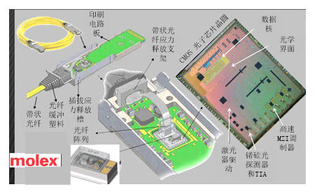 隨著數(shù)據(jù)通信和互聯(lián)應用等對帶寬的要求越來越大,人們越來越重視數(shù)據(jù)中心及高性能計算應用的帶寬和密度。在獲取40Gb/s帶寬性能時銅互連面臨著巨大的挑戰(zhàn),它們的功率和尺寸要求無法有效應用于更高帶寬。因此,大家都在逐漸轉向使用可以處理更高帶寬的光互連,以便獲取更長的流程長度、消耗更少的功率、提高電磁噪聲抗擾度并提供比銅解決方案更靈活的布線管理。