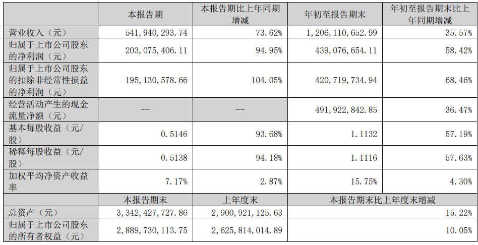 ICC訊 蘇州天孚光通信股份有限公司(以下簡稱“天孚通信”或“公司”)發(fā)布2023年三季度報告稱:報告期內(nèi),公司實現(xiàn)營業(yè)收入 5.42 億元,比上年同期增長 73.62%;實現(xiàn)歸屬于上市公司股東的凈利潤 2.03 億元,比上年同期增長 94.95%。