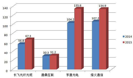 2015年,得益于"寬帶中國(guó)"戰(zhàn)略的深入推進(jìn),運(yùn)營(yíng)商持續(xù)大力發(fā)展4G網(wǎng)絡(luò)基礎(chǔ)設(shè)施的建設(shè),國(guó)內(nèi)光纖和光纜的市場(chǎng)需求不斷上升,推動(dòng)國(guó)內(nèi)光纖光纜企業(yè)整體業(yè)績(jī)持續(xù)走高。