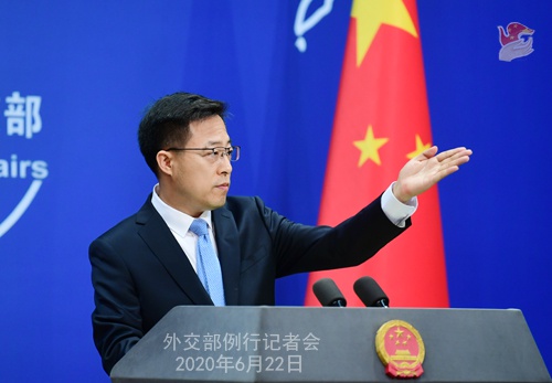 ICC訊 2020年6月22日,外交部發(fā)言人趙立堅(jiān)主持例行記者會(huì),部分內(nèi)容如下。