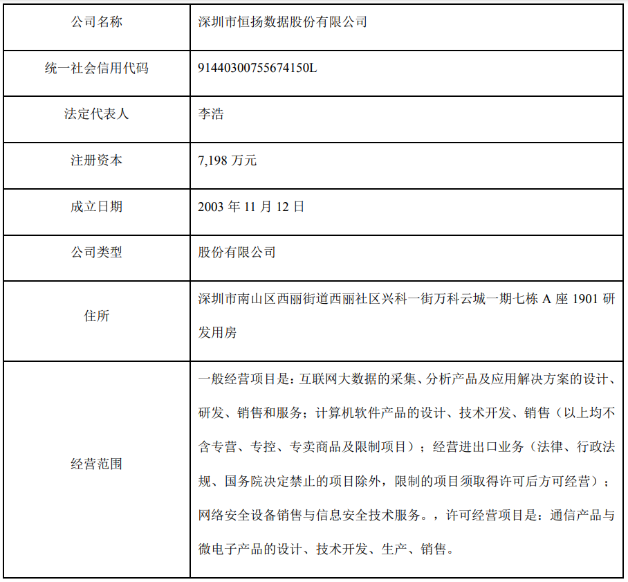 本次交易的標(biāo)的公司為深圳市恒揚(yáng)數(shù)據(jù)股份有限公司,如下所示: