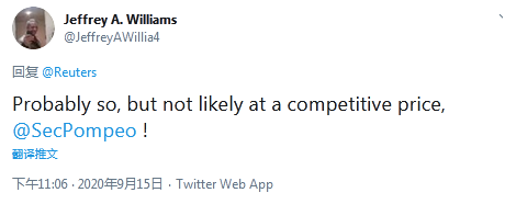 還有網(wǎng)友對蓬佩奧所說的表示質(zhì)疑,“也許是這樣吧,但不太可能存在有競爭力的價格?!薄?