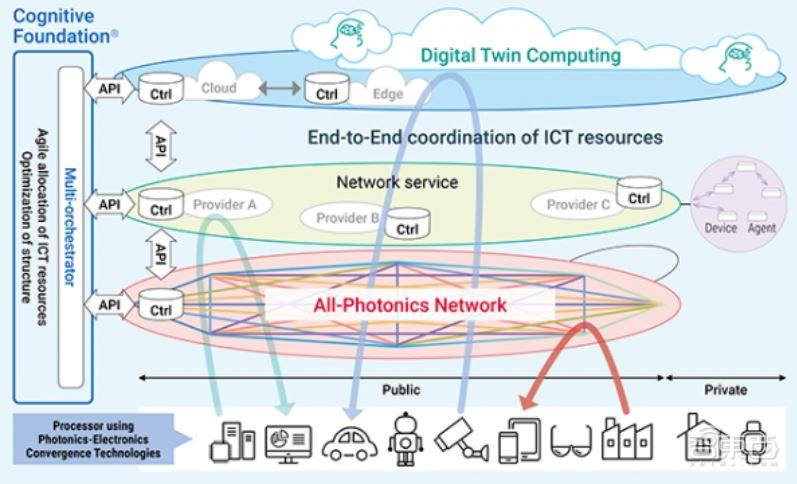 2019年,NTT與英特爾、索尼聯(lián)合發(fā)起了IOWN全球論壇,NTT提出了一種新的通信基礎(chǔ)設(shè)施,使用前沿的光學(xué)和信息處理技術(shù)來提供高速寬帶通信和巨大的計算資源,創(chuàng)建一個“智能世界”。