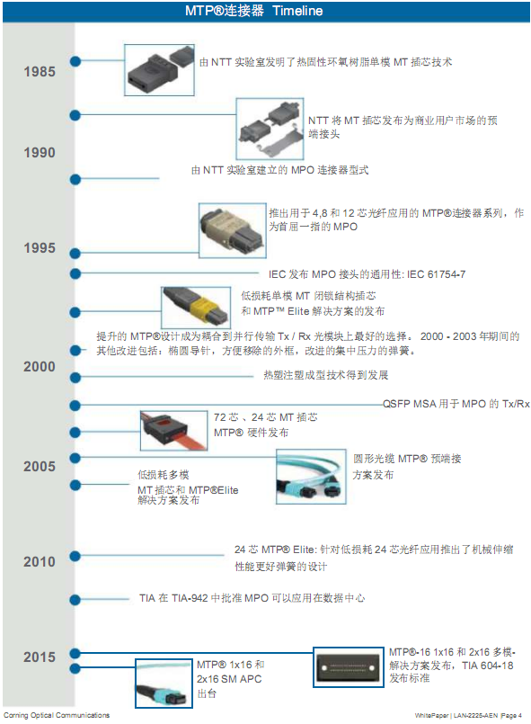 2015 –引入一種新的 MTP 16 芯方式,在一行中最多可容納 16 芯光纖鏈接
