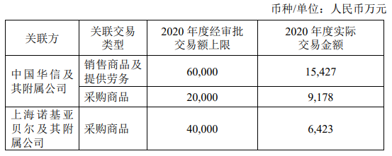 2020 年度經審批的關聯(lián)交易額度及實際執(zhí)行情況如下: