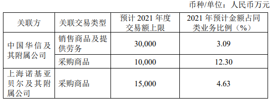 根據(jù)協(xié)議,2021 年 1 月 29 日至 2022 年 1 月 29 日,本集團向中國華信及其附屬公司銷售商品及提供服務交易金額上限為人民幣 300,000,000 元,本集團向中國華信及其附屬公司采購商品交易金額上限為人民幣 100,000,000 元。