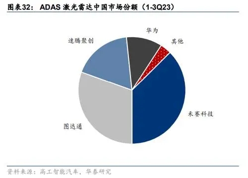 根據(jù)高工智能,2023年1-9月,中國市場乘用車前裝標(biāo)配激光雷達交付量超過30萬顆,禾賽科技份額為37.48%,排名全國第一;圖達通、速騰聚創(chuàng)、華為所占份額分別為30.56%、17.82%、10.81。速騰聚創(chuàng)是國內(nèi)激光雷達賽道上主要玩家之一。