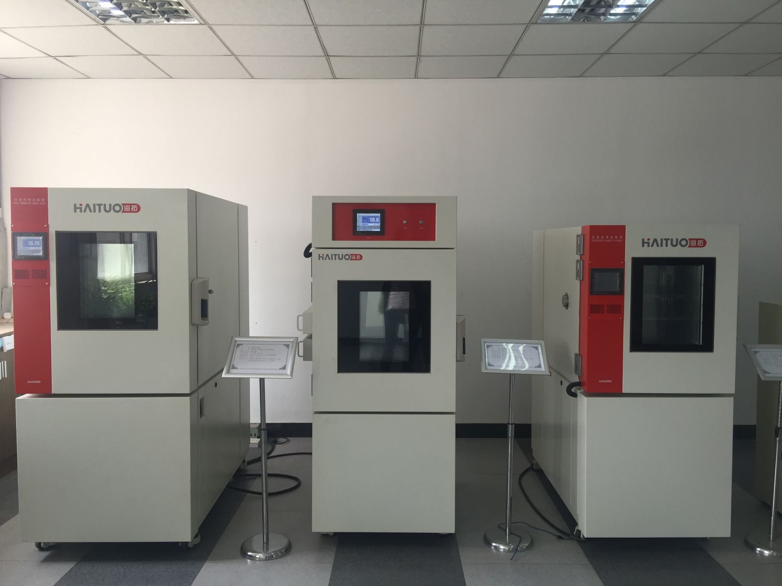 了解海拓的產(chǎn)品系列后,我們跟隨劉總參觀了產(chǎn)品設(shè)備室。劉總詳細(xì)的給我們講解了每個產(chǎn)品的用途、性能以及外觀造型。此外陳經(jīng)理還指出今年海拓主推高低溫快速溫變應(yīng)力篩選試驗(yàn)箱,并帶領(lǐng)我們近距離感觀接觸了這系列產(chǎn)品。