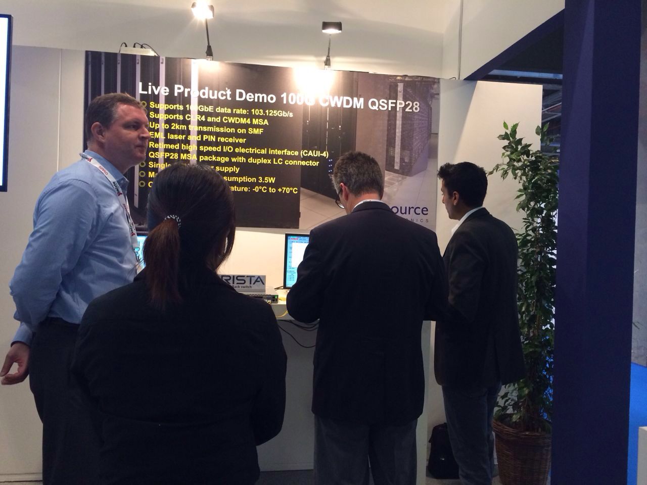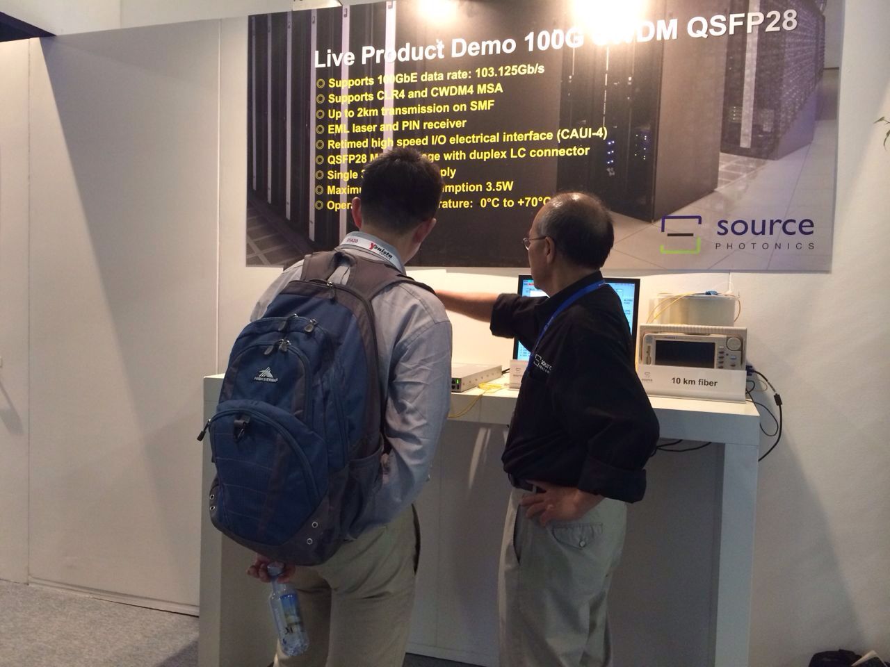 Source將現(xiàn)場演示100G CWDM QSFP28光模塊在10km光纖鏈路上的傳輸。