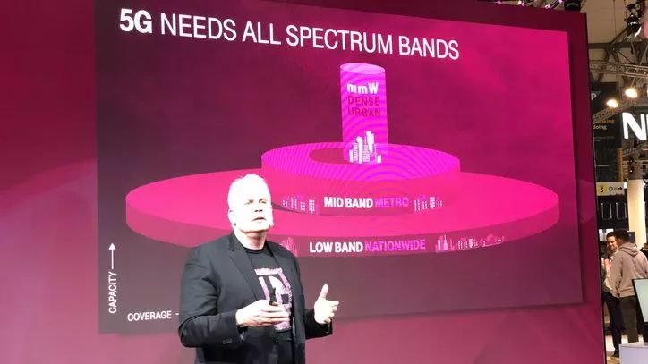 T-Mobile認(rèn)為,5G建設(shè)需要包括低頻、中頻和高頻的全頻段網(wǎng)絡(luò)。600MHz低頻段利于廣覆蓋和室內(nèi)覆蓋,而28GHz高頻段可提供更快的連接速率,中頻段則兼具覆蓋和容量的優(yōu)勢(shì)。