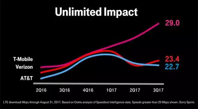T-Mobile這家運(yùn)營(yíng)商在美國(guó)市場(chǎng)極具“侵略性”,其依靠不斷夯實(shí)網(wǎng)絡(luò)基礎(chǔ)設(shè)施建設(shè)和無(wú)限流量攻勢(shì),已在短時(shí)間內(nèi)碾壓Sprint躍升為美國(guó)第三大運(yùn)營(yíng)商,而根據(jù)第三方評(píng)測(cè)機(jī)構(gòu)的測(cè)試結(jié)果,其4G網(wǎng)絡(luò)速率已經(jīng)趕超Verizon和AT&T兩大排名一、二位的運(yùn)營(yíng)商。