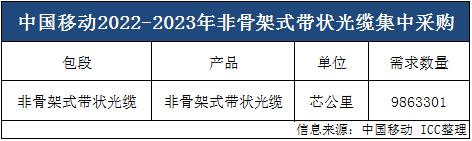 ICC訊 8月24日消息,中國移動啟動2022-2023年非骨架式帶狀光纜產(chǎn)品集中采購項目,該項目計劃采購非骨架式帶狀光纜,預計采購規(guī)模約5.19萬皮長公里,折合986.33萬芯公里。本次招標為預估規(guī)模,實際采購量以采購合同為準。