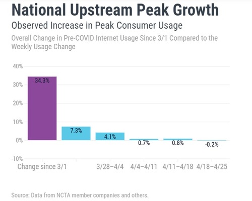 NCTA表示,自3月1日以來,全國下游峰值率上升了16%,全國上游峰值率上升了34%。