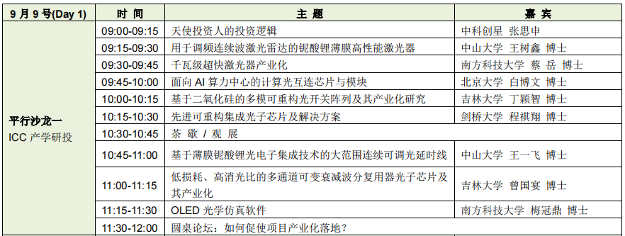 9月9日上午:專題一《 AI模型和算力互連》(伊敦A廳)、專題二《光電智感論壇》(伊敦B廳)、專題三《光聯(lián)接與相干下沉》(伊敦C廳)
