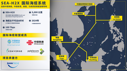 2022年5月12日 —— 中國移動國際有限公司(CMI)、中國聯通國際有限公司(CUG)、Converge Information and Communications Technology Solutions, Inc.(Converge)以及 PPTEL SEA H2X Sdn. Bhd (PPTEL SEA H2X) 近日共同宣布計劃合作鋪設SEA-H2X國際海纜系統(tǒng),為亞洲及全球數字化轉型擴容提速。SEA-H2X由國際海纜聯盟成員共同運營,由華海通信技術有限公司(HMN Tech)承建。SEA-H2X將連接中國海南、中國香港、菲律賓、泰國、馬來西亞及新加坡等地,進一步可延伸至越南、柬埔寨以及印度尼西亞,建成后將極大提升亞洲區(qū)域內的網絡連接性。