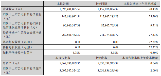 ICC訊 8月28日晚間,深圳市聚飛光電股份有限公司(簡(jiǎn)稱“聚飛光電”或“公司”,300303)發(fā)布2024年半年度報(bào)告。2024年上半年,聚飛光電實(shí)現(xiàn)營(yíng)業(yè)收入13.93億元,同比增長(zhǎng)20.43%;歸屬于上市公司股東的凈利潤(rùn)1.47億元,同比增長(zhǎng)25.2%;凈利率10.6%。
