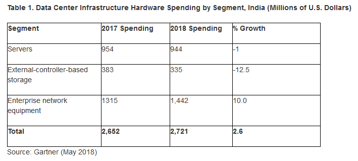 ICCSZ訊 根據Gartner的最新數據,2018年印度數據中心基礎設施硬件支出總額達到27億美元,比2017年增長2.6%。