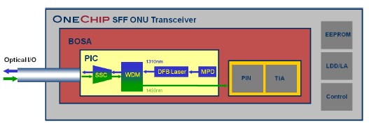 最近幾年一直參展光博會的加拿大光子集成技術(shù)公司OneChip再次引起了中國光通信廠商的密切關(guān)注。該公司將PIC光子集成技術(shù)用于制造光模塊,在本屆光博會上,該公司宣布使用光子集成技術(shù)制造的PON模塊已經(jīng)量產(chǎn),而且選擇了偉創(chuàng)力和Fabrinet兩家代工大廠為他們代工,另外,廣東東研網(wǎng)絡(luò)和深圳澤萬豐兩家中國公司依客戶區(qū)分代理銷售。