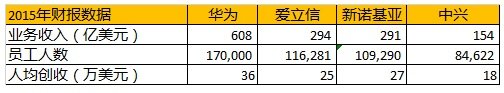 還有,坐擁17萬(wàn)員工的華為也是五大通信廠商中員工人數(shù)最為龐大的公司,在2015年其人均薪酬已經(jīng)達(dá)到人均7.7萬(wàn)美元,是中興的2.5倍,也遠(yuǎn)超愛(ài)立信和諾基亞這些歐洲公司。