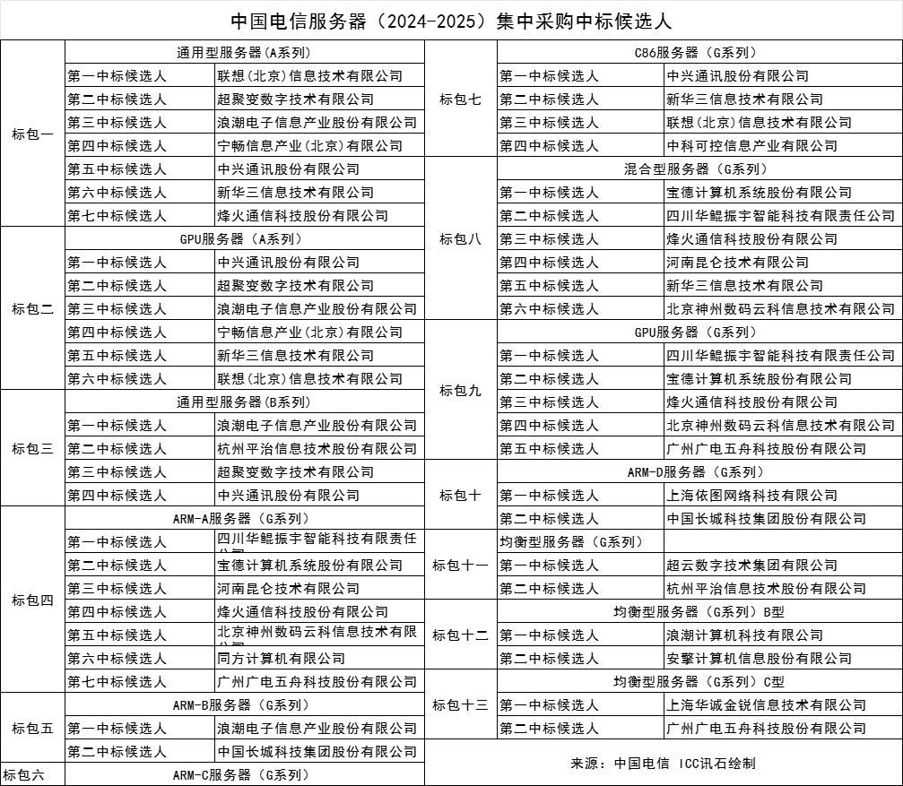 文章標題:中國電信服務器(2024-2025)集采中標候選人公示