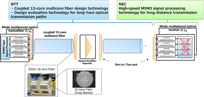 NEC和NTT首次成功地利用12芯光纖進行了超過7000公里的遠距離傳輸實驗