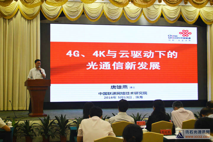上午的培訓(xùn)及參觀以后,下午2點(diǎn),嘉賓們準(zhǔn)時(shí)回到會(huì)場,會(huì)議在中國聯(lián)通首席專家唐雄燕帶來的主題演講《4G、4K與云驅(qū)動(dòng)下的光通信新發(fā)展》中正式開始,演講主題從通信業(yè)務(wù)趨勢與網(wǎng)絡(luò)變革、超寬帶接入、超高速傳輸以及軟件定義光網(wǎng)絡(luò)四個(gè)方面出發(fā),為我們講述目前通信業(yè)的巨變,行業(yè)面臨很大的挑戰(zhàn),電信業(yè)面臨多變的環(huán)境,尤其是互聯(lián)網(wǎng)廠商的切入更是提出一種挑戰(zhàn)。傳統(tǒng)電信網(wǎng)絡(luò)服務(wù)面臨著更多的挑戰(zhàn),包括網(wǎng)絡(luò)連接數(shù)和流量增長推動(dòng)網(wǎng)絡(luò)規(guī)模快速膨脹,業(yè)務(wù)云化和終端虛擬化顛覆網(wǎng)絡(luò)全局流量模型,專有網(wǎng)絡(luò)和專有設(shè)備極大增加網(wǎng)絡(luò)經(jīng)營壓力,“互聯(lián)網(wǎng)+”業(yè)務(wù)創(chuàng)新也在加快驅(qū)動(dòng)網(wǎng)絡(luò)智能化轉(zhuǎn)型?;?0%流量待在數(shù)據(jù)中心里面流轉(zhuǎn),因此數(shù)據(jù)中心會(huì)收到較大的壓力,很快但這也是發(fā)展機(jī)遇,運(yùn)營商的重點(diǎn)仍在做管道上,未來網(wǎng)絡(luò)是基于IDC的網(wǎng)絡(luò),將對(duì)整個(gè)網(wǎng)絡(luò)架構(gòu)產(chǎn)生革命性影響。