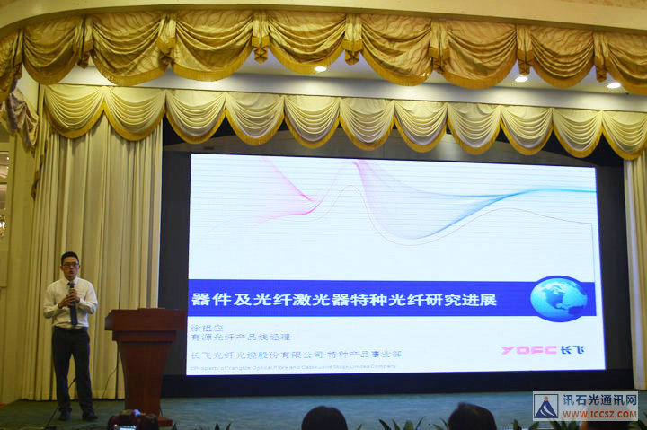 話題一結(jié)束后,嘉賓們進(jìn)入短暫的茶歇時(shí)間,趁著休息時(shí)間大家互相交流,分享心得。隨后,長飛特種產(chǎn)品事業(yè)部有源光纖產(chǎn)品線經(jīng)理徐祖應(yīng)帶來了《器件及激光器特種光纖研究進(jìn)展》,詳細(xì)介紹了器件用單模光纖系列、器件用保偏光纖系列和光纖激光器有源無源光纖幾大方面。