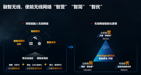 IntelligentRAN通過一系列關(guān)鍵技術(shù)將智能融入無線網(wǎng)絡(luò)的業(yè)務(wù)、體驗和運維中,實現(xiàn)業(yè)務(wù)智營、網(wǎng)絡(luò)智優(yōu)、運維智簡,運營商網(wǎng)絡(luò)從業(yè)務(wù)、性能、體驗、運維、綠色等方面得到全面提升。