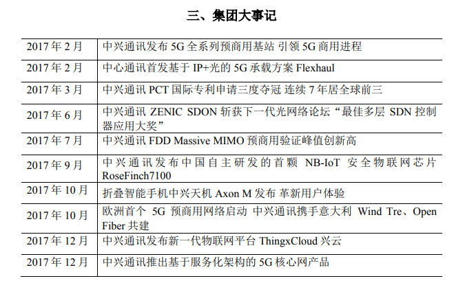 展望2018年,隨著網(wǎng)絡(luò)流量的快速增長,中興通訊面臨新的發(fā)展機(jī)遇。這些機(jī)遇體現(xiàn)為:網(wǎng)絡(luò)基礎(chǔ)設(shè)施持續(xù)升級,5G 商業(yè)進(jìn)程加速;智能終端需求旺盛;新技術(shù)、新模式不斷出現(xiàn),人工智能、物聯(lián)網(wǎng)、智慧家庭等新增長點(diǎn)涌現(xiàn)。2018年,本集團(tuán)將圍繞“2020 戰(zhàn)略”,進(jìn)一步聚焦價(jià)值客戶,不斷提升客戶滿意度;堅(jiān)持核心技術(shù)自主創(chuàng)新,持續(xù)加大 5G 等核心產(chǎn)品研發(fā)投入,以強(qiáng)化產(chǎn)品競爭力;抓住全球電信市場技術(shù)和格局變化的機(jī)遇,堅(jiān)定地提高市場占有率,提升全球市場地位;聚集一流人才,加強(qiáng)合規(guī)和內(nèi)控,不斷完善公司內(nèi)部管理,以實(shí)現(xiàn)本集團(tuán)的穩(wěn)健和可持續(xù)發(fā)展。