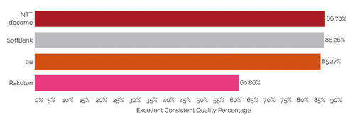 重要的是,Tutela將其自己的“Excellent Consistent Quality”排名應(yīng)用于日本所有提供商。該公司表示,其針對(duì)用戶體驗(yàn)的總體指標(biāo)包括一系列常見但強(qiáng)度很高的用例,例如“ 1080P視頻,實(shí)時(shí)移動(dòng)視頻廣播,在線游戲和高清視頻通話”。