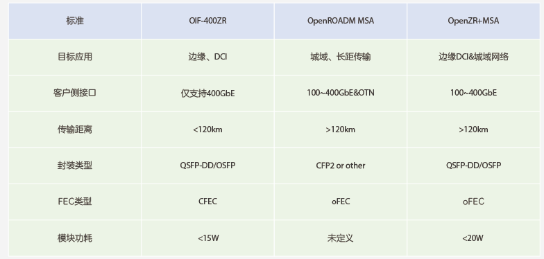 400G相干標準對比分析