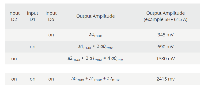 SHF DAC的bit位數(shù)由輸入通道決定,例如,如果想生成PAM-4信號(hào),僅需要兩個(gè)輸入信號(hào)輸入DAC即可。當(dāng)僅有一個(gè)輸入位輸入時(shí),DAC將作為二進(jìn)制D型觸發(fā)器來使用。建議使用DAC的最高有效位,此時(shí)DAC的輸出幅度最大,信噪比最優(yōu)。