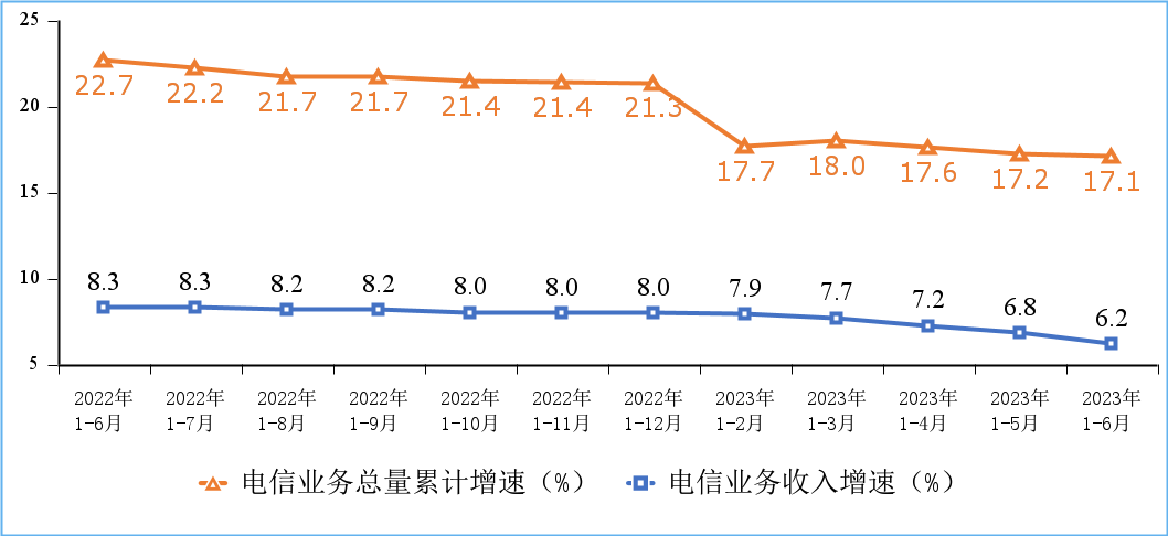 圖1 電信業(yè)務(wù)收入和電信業(yè)務(wù)總量累計增速