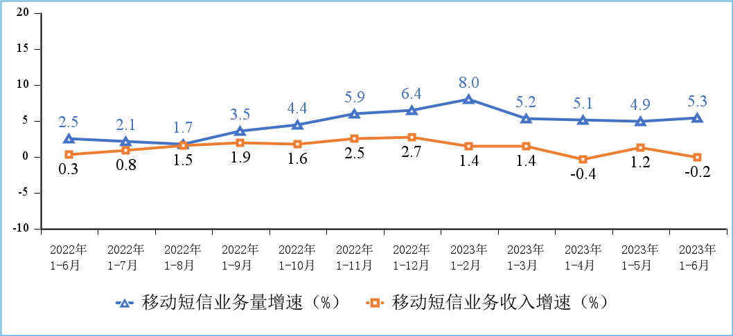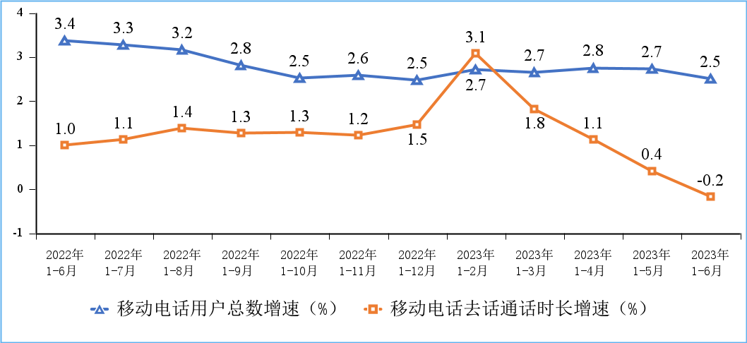 移動電話通話量小幅回落,移動短信業(yè)務(wù)收入增速轉(zhuǎn)負。上半年,移動電話去話通話時長完成1.12萬億分鐘,同比下降0.2%;固定電話主叫通話時長完成393.2億分鐘,同比下降4.1%。上半年,全國移動短信業(yè)務(wù)量同比增長5.3%,移動短信業(yè)務(wù)收入同比下降0.2%,增速較一季度分別提升0.1個和回落1.6個百分點。
