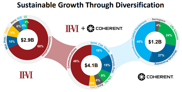通過互補(bǔ)的技術(shù)平臺(tái)加速增長:II-VI和Coherent在子系統(tǒng)和系統(tǒng)級(jí)別互為補(bǔ)充的激光器、光學(xué)和電子技術(shù),將催生極具吸引力的解決方案,以加速公司在航空航天和國防、生命科學(xué)和激光增材制造方面的發(fā)展,同時(shí)提高利潤和增強(qiáng)盈利能力。此外,高度互補(bǔ)的地域影響力將支持公司加速在亞洲主要工業(yè)市場的增長。