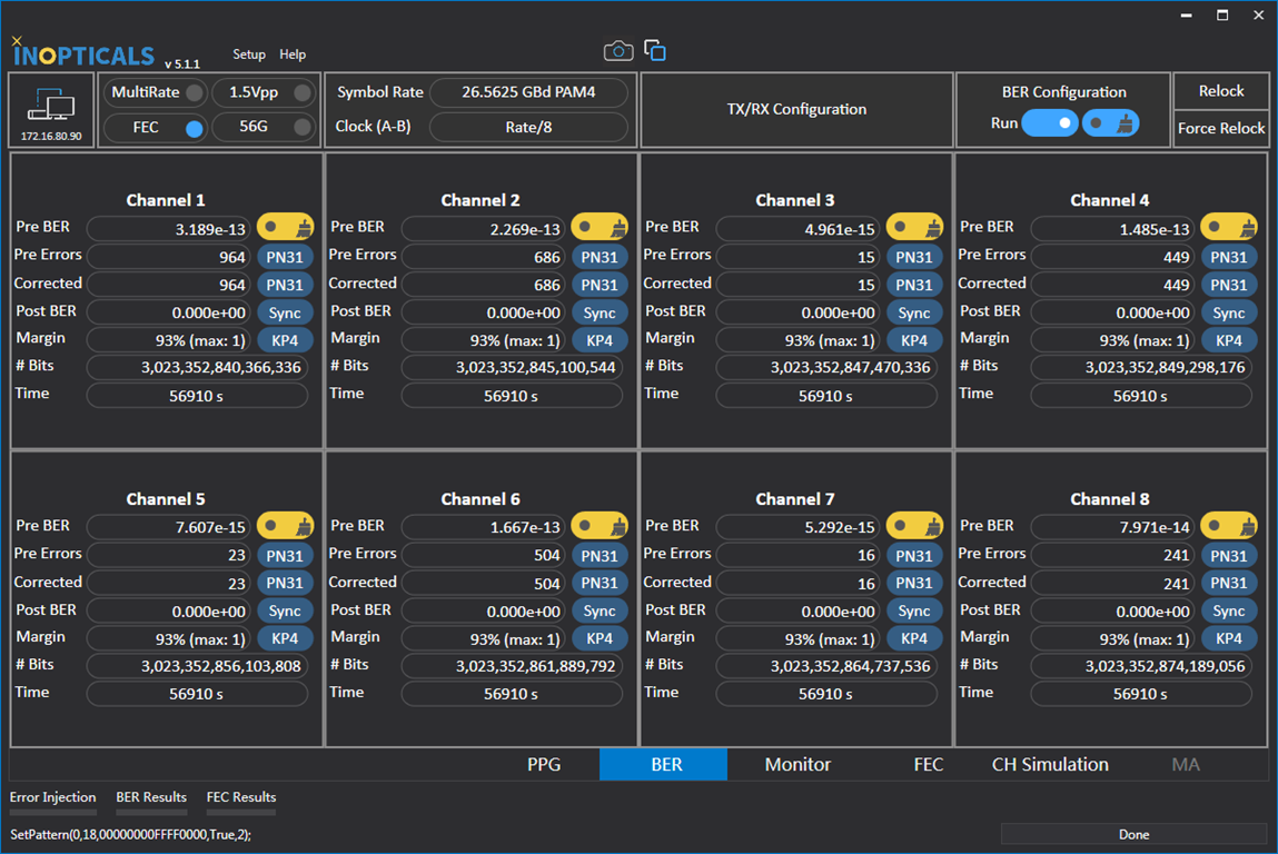 該產(chǎn)品在400GE流量儀表上,連續(xù)24小時的10km光纖傳輸測試中,啟用KP4 FEC功能后,數(shù)據(jù)傳輸為零丟包。易飛揚將在本年度結束前批量生產(chǎn)該產(chǎn)品。