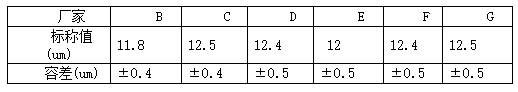 表1 不同廠家MFD的標(biāo)稱值及容差