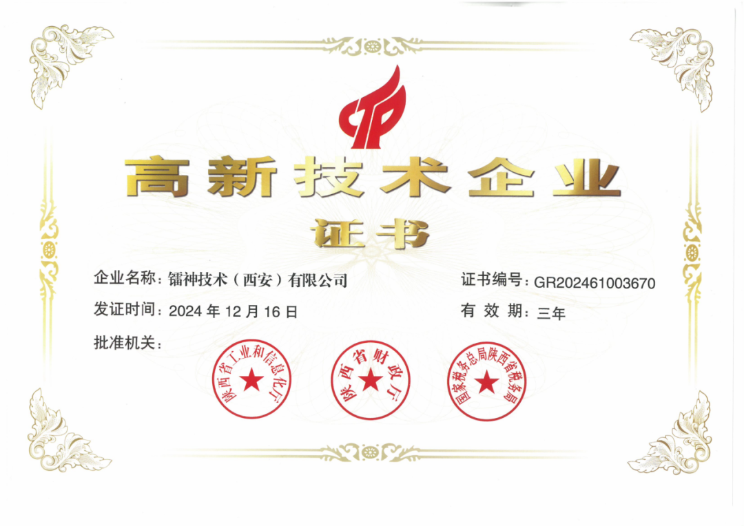 喜訊 !鐳神西安獲批國家高新技術(shù)企業(yè),開啟新征程!