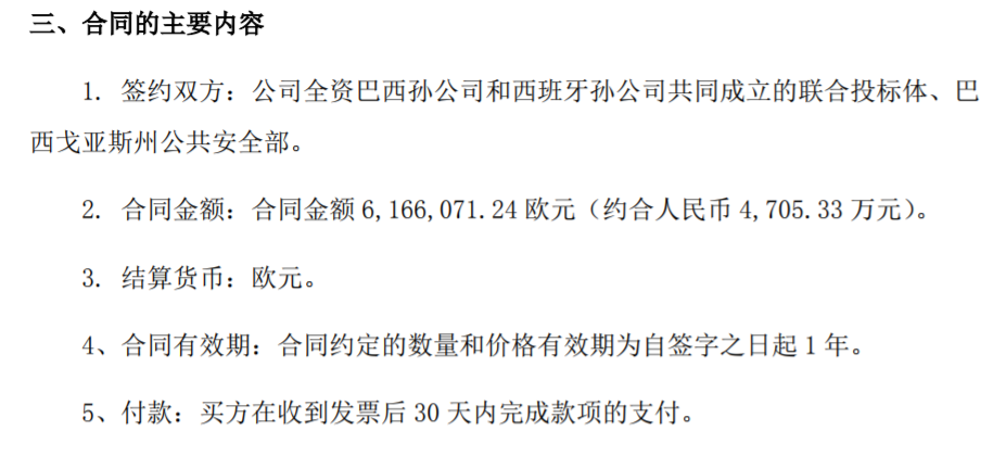 ICCSZ訊 (編輯:Nicole)海能達(dá)通信股份有限公司(以下簡稱:海能達(dá)公司)公告稱其下屬的全資孫公司 TELTRONIC Brazil LTDA(以下簡稱:巴西孫公司)和 TELTRONIC S.A.U.(以下簡稱:西班牙孫公司)共同成立的聯(lián)合投標(biāo)體,與巴西戈亞斯州(GOIAS)公共安全部簽署了關(guān)于巴西戈亞斯州警察 TETRA 終端采購項目的合同,合同金額 6,166,071.24 歐元(約合人民幣 4,705.33 萬元),主要是為巴西戈亞斯州警察提供 TETRA 終端產(chǎn)品,包括手持終端、車載臺等。