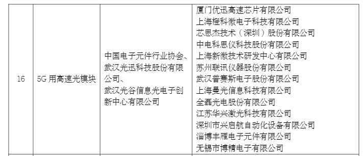 “5G用高速光模塊”應(yīng)用示范方向、推進(jìn)機(jī)構(gòu)和參與單位名單