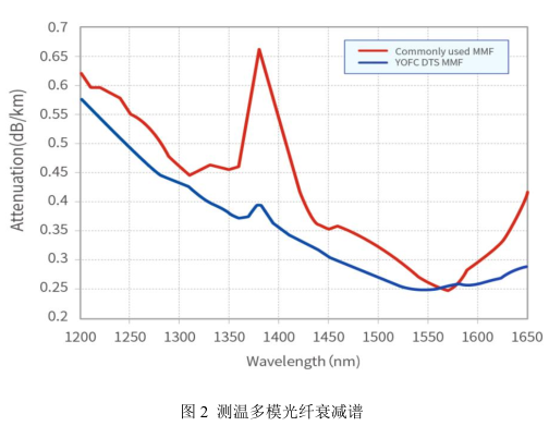 由于多模光纖的拉曼增益高、受激閾值高,因此成熟的分布式測溫產(chǎn)品多采用多模光纖作為傳感光纖。但傳統(tǒng)的通信多模光纖僅優(yōu)化了波長850nm和1300nm處的衰減,較高的C波段衰減嚴(yán)重影響了長距離測量的信噪比,另一方面較大的模間色散會造成長距離測試下空間分辨率的劣化。此外,普通多模光纖因其幾何一致性較差,會導(dǎo)致接續(xù)點(diǎn)測得的溫度出現(xiàn)跳變。