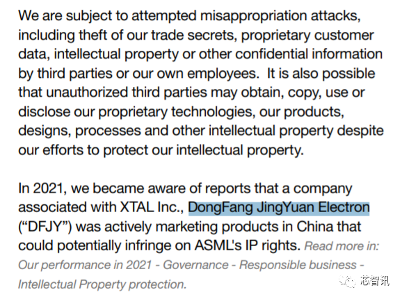 ASML稱,2021年經(jīng)相關(guān)報(bào)道了解到,與之前因竊密而被判賠償?shù)腦TAL公司的相關(guān)公司——東方晶源可能正積極地在中國銷售侵犯ASML知識(shí)產(chǎn)權(quán)的產(chǎn)品。