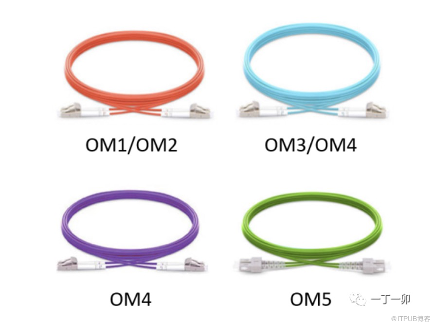 為區(qū)別光纖類型,OM1、OM2、OM3、OM4和OM5跳纖護(hù)套的顏色也有所區(qū)分:OM1/OM2為橙色,OM3/OM4為水藍(lán)色(部分廠商OM4跳纖的護(hù)套為紫羅蘭色),OM5為淺綠色。