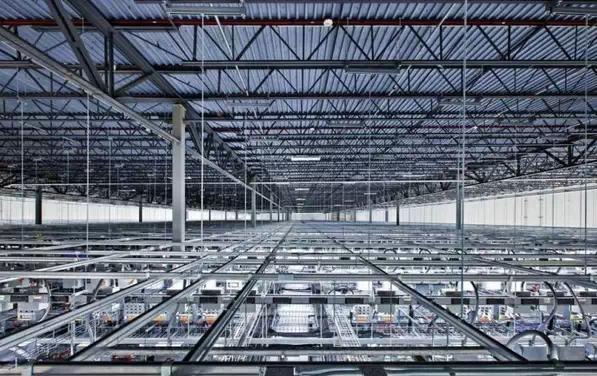 路由器和交換機(jī)讓谷歌的數(shù)據(jù)中心之間進(jìn)行對(duì)話,光纖網(wǎng)絡(luò)速度是平時(shí)家用網(wǎng)速的20萬(wàn)倍。圖中靠近天花板的黃色部分就是光纖