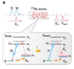高效率、大帶寬的量子存儲(chǔ)器是實(shí)現(xiàn)量子通信和量子計(jì)算不可或缺的重要部件。而實(shí)現(xiàn)操作時(shí)間僅為納秒量級(jí)(帶寬達(dá)到GHz)的高效量子存儲(chǔ)技術(shù)是高速量子信息處理技術(shù)走向應(yīng)用亟需攻克的技術(shù)難點(diǎn)之一。在目前基于原子系統(tǒng)的眾多量子存儲(chǔ)方案中,只有遠(yuǎn)失諧量子存儲(chǔ)方案的帶寬能夠達(dá)到GHz,其帶寬優(yōu)勢(shì)明顯超越電磁誘導(dǎo)透明、光子回波等共振量子存儲(chǔ)方案。然而由于光與原子的遠(yuǎn)離共振相互作用帶來諸多技術(shù)限制,存儲(chǔ)效率一直未能突破30%。
