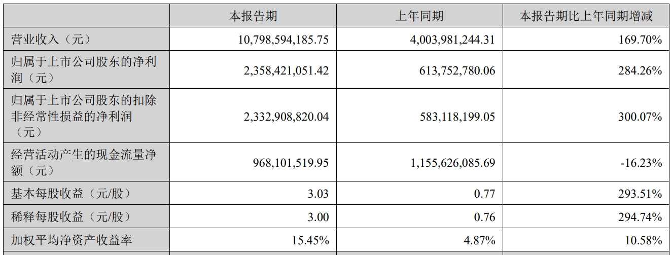 ICC訊 中際旭創(chuàng)股份有限公司(簡稱中際旭創(chuàng))發(fā)布2024年上半年業(yè)績公告,報告期內,公司實現營業(yè)收入107.99 億元,同比增加169.70%;實現營業(yè)利潤27.28億元,同比增加282.35%;歸屬于上市公司股東的凈利潤23.58億元,同比增加284.26%。