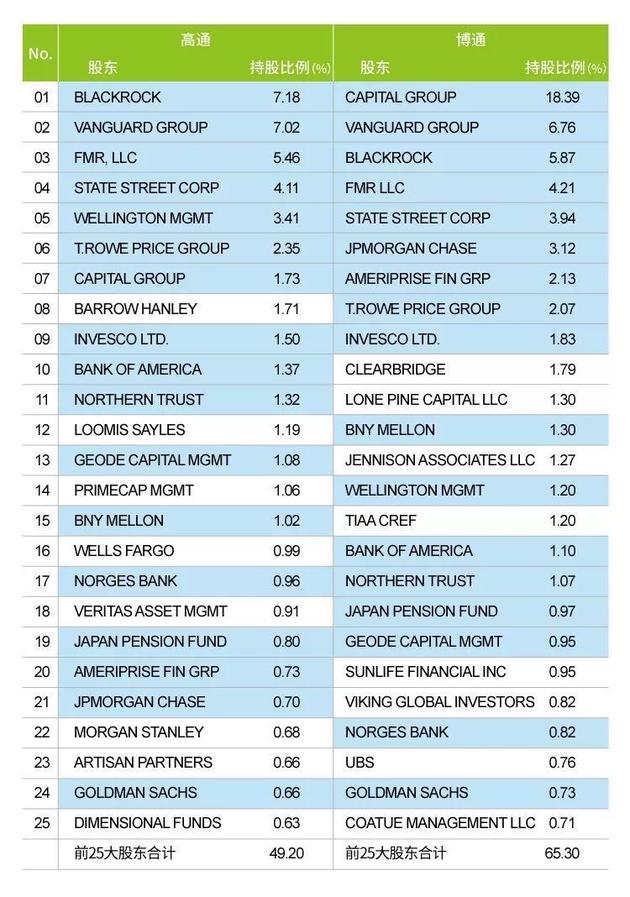 高通與博通的前25個大股東中有17家重合(圖片來源:DeepTech深科技)